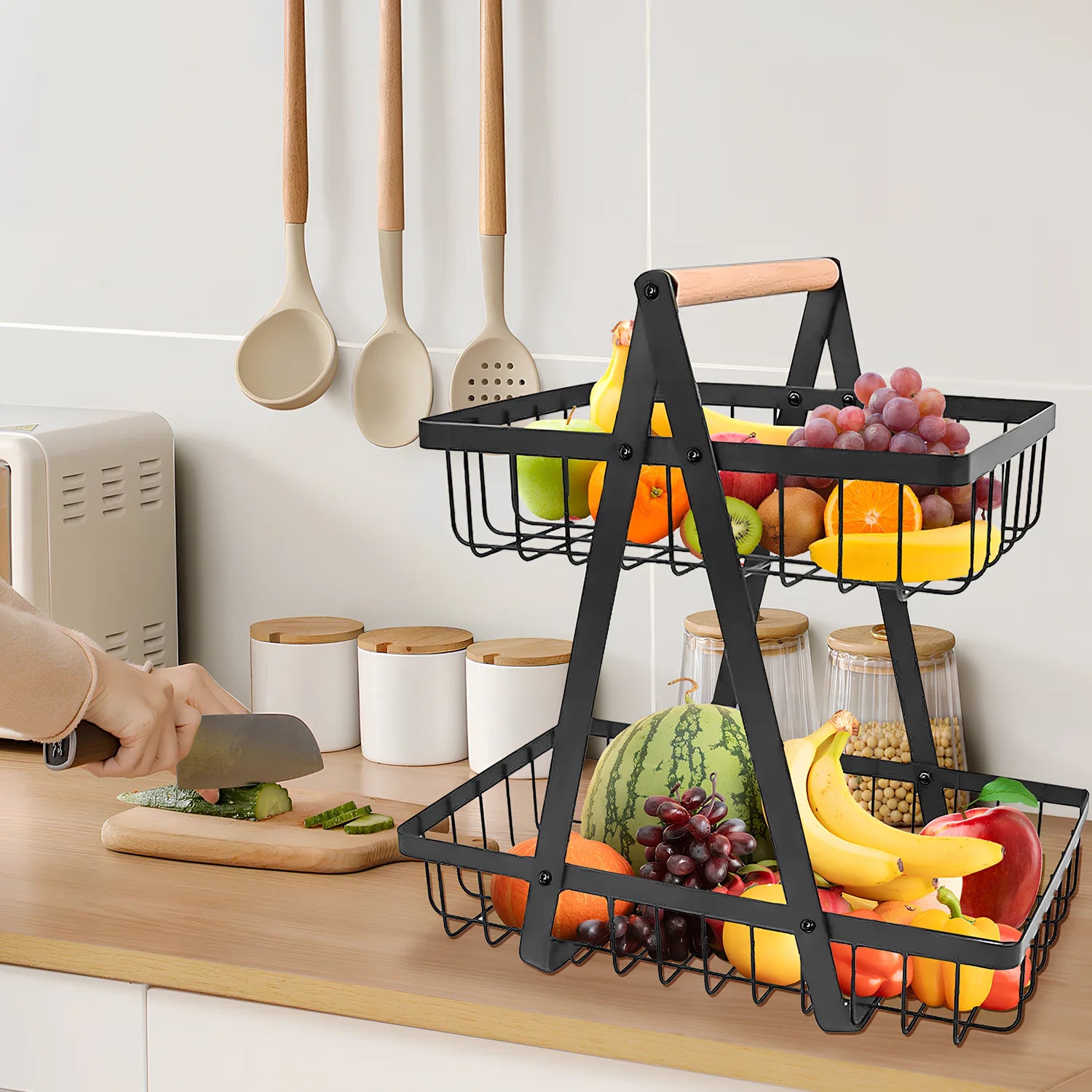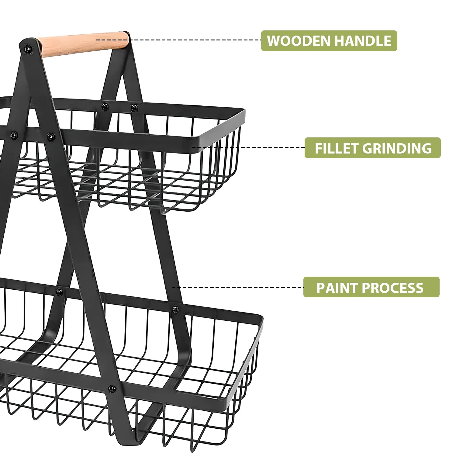 2/3 Tier Fruit Storage Basket Countertop for Kitchen Fruit Vegetable Basket Bowle with Handle Bread Snacks Stand