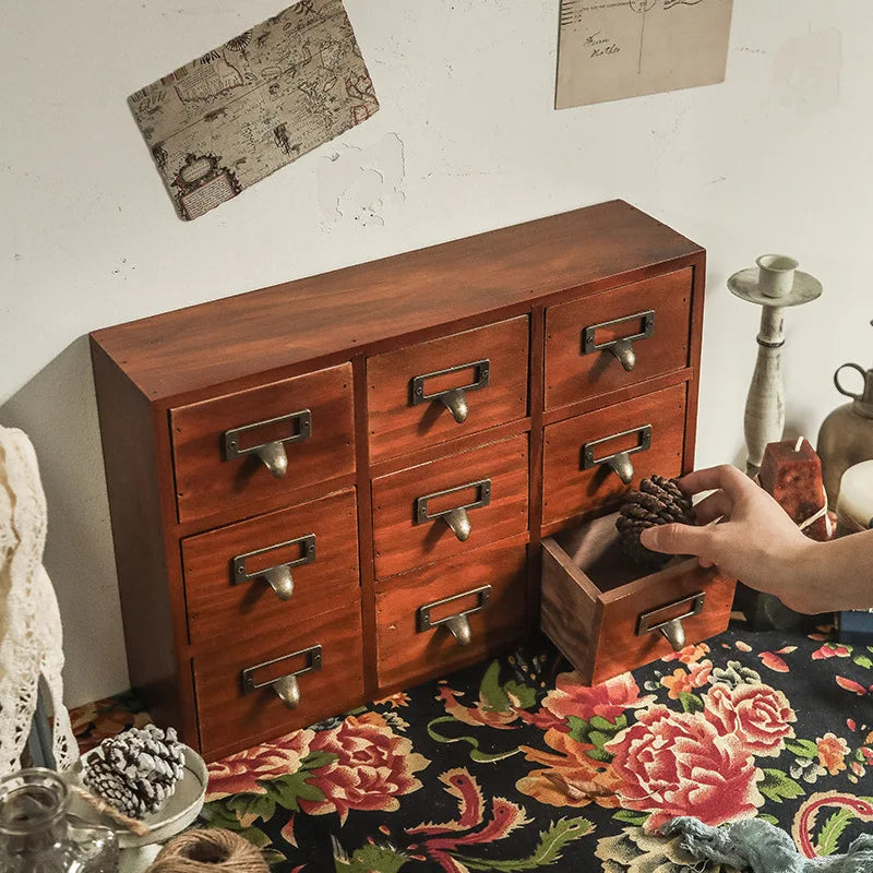 Vintage multi-layer wooden storage box with spacious compartments ideal for cosmetics, jewellery, crafts, or office supplies.