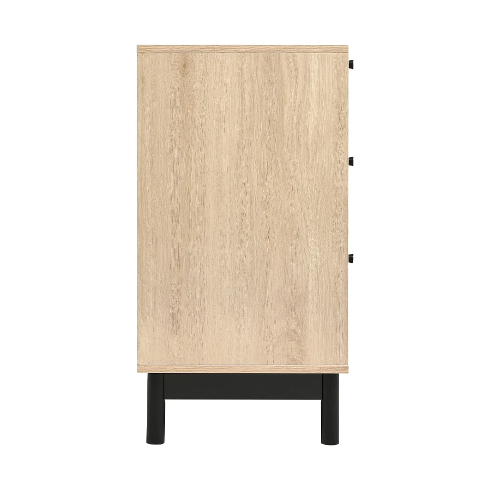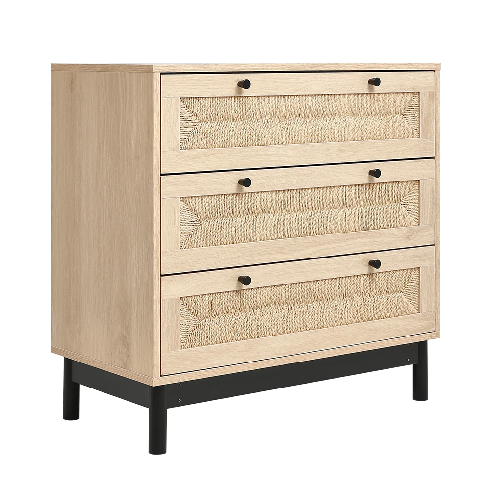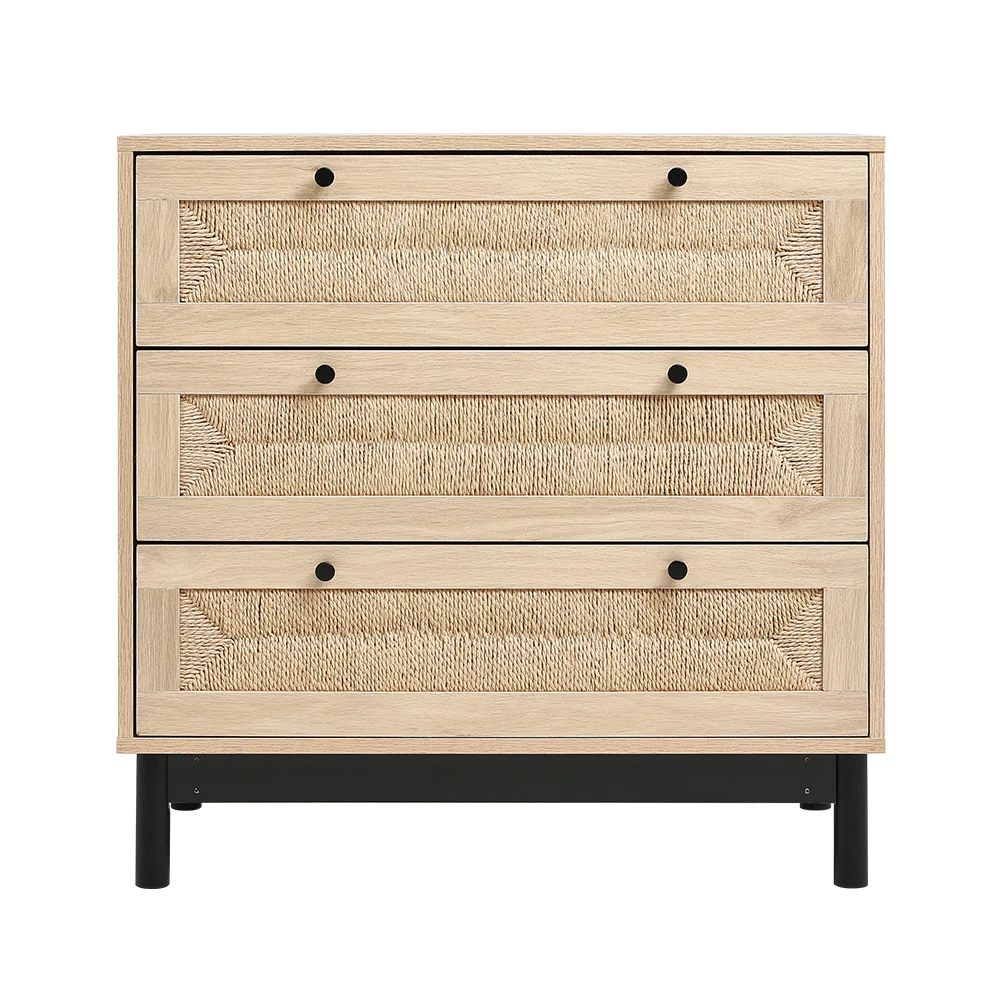 Crafted with a farmhouse-inspired design, this Lifeideas cabinet features a natural woven look of drawer fronts that brings a warm and exquisite feel to any space. The black cylindrical legs complement the cabinet body, blending seamlessly for a refined appearance of elegance and functionality. The 3 large drawers are terrific storage for all your household needs. Great for your living room, bedroom, or hallway.