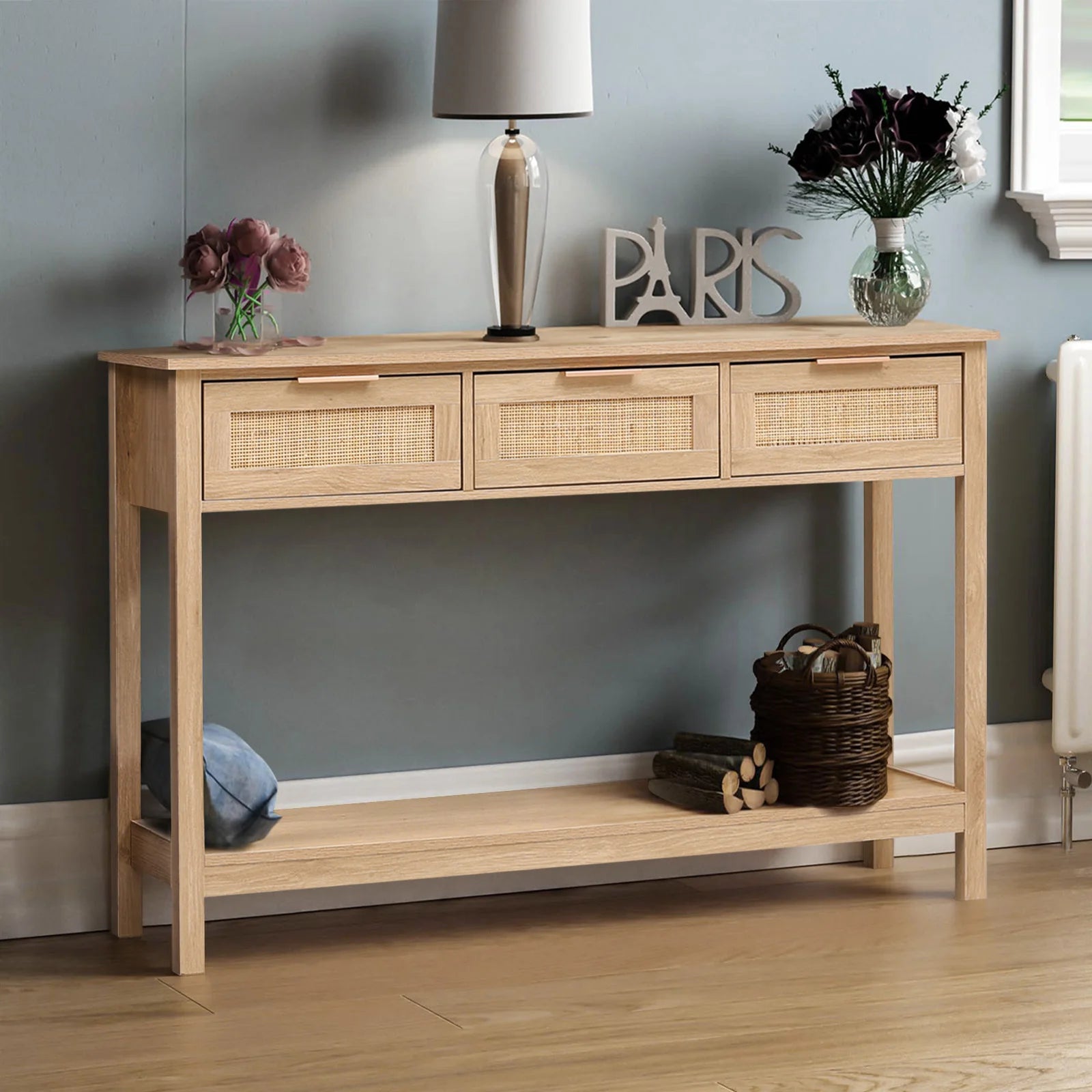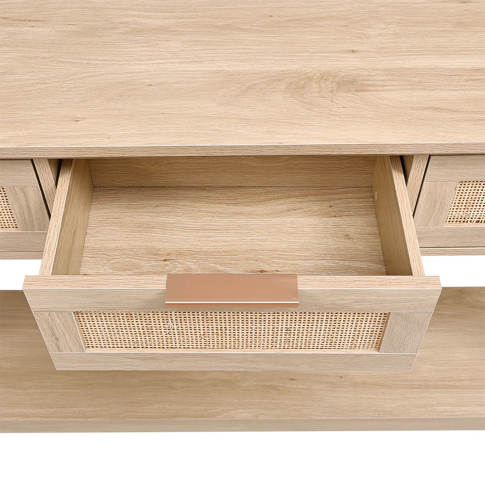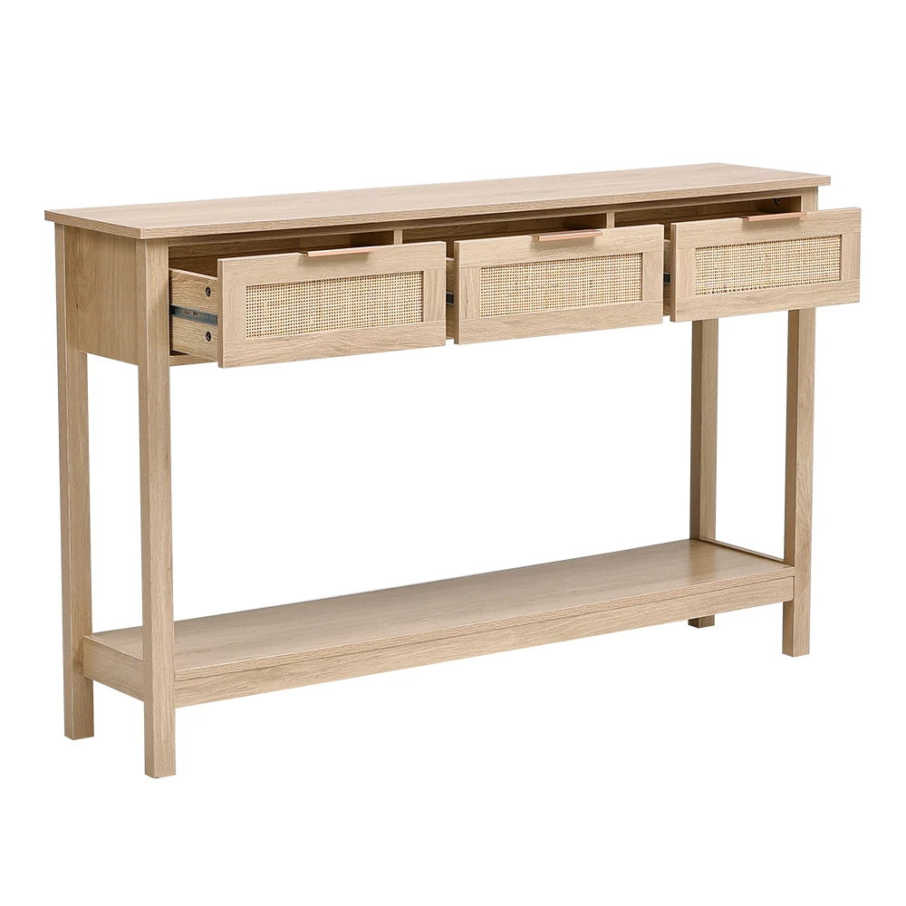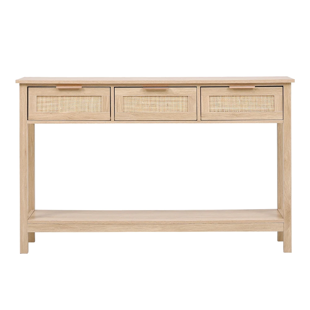 The Lifeideas Console Table features a blend of wood and rattan accents, creating a rustic and charming piece for your home. Whether you place it in your living room, hallway, or bedroom, this console will offer style and functionality. Its countertop can hold a stylish mirror, lamp, vase or other decorations. The open bottom shelf is ideal for storage baskets or taller display items for extra arrange. The design of rattan drawers can facilitate you to store some small items, making your living space cleaner and tidier.