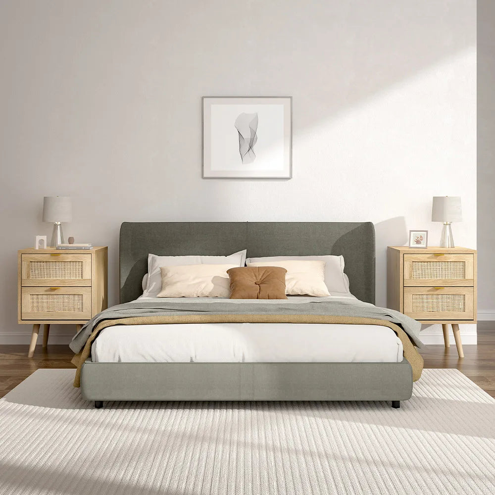 2-Piece Solid Wood Rattan Side Cabinet Set: Nordic-inspired design with woven drawer fronts, smooth-sliding drawers, and sturdy pine legs. Stylish storage for bedrooms or living rooms.