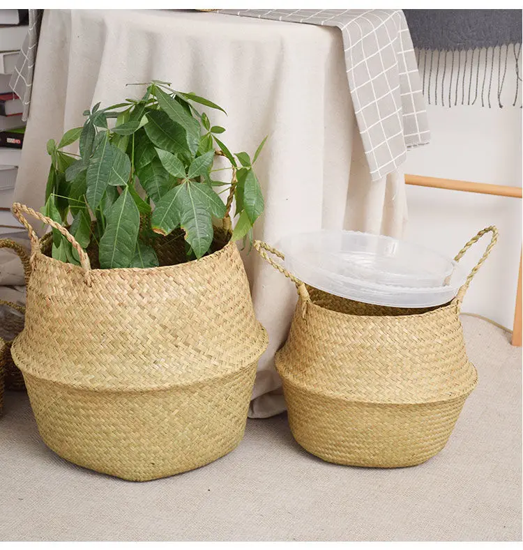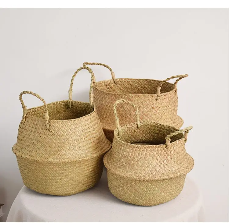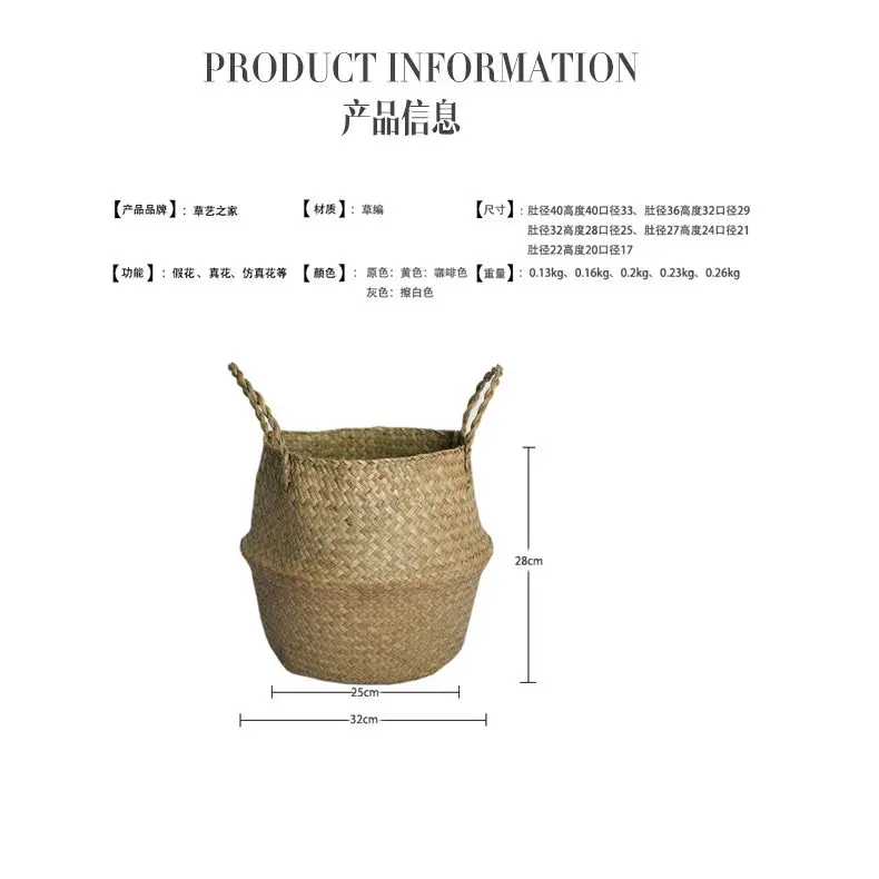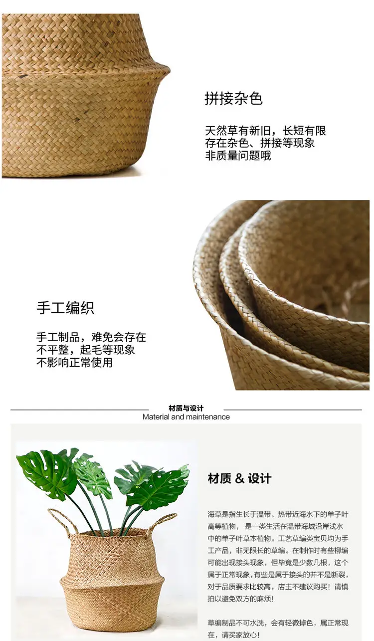 Seaweed Wicker Basket Rattan Hanging Flower Pot Dirty Clothes Basket Storage Basket Cesta Mimbre Basket Picnic Basket