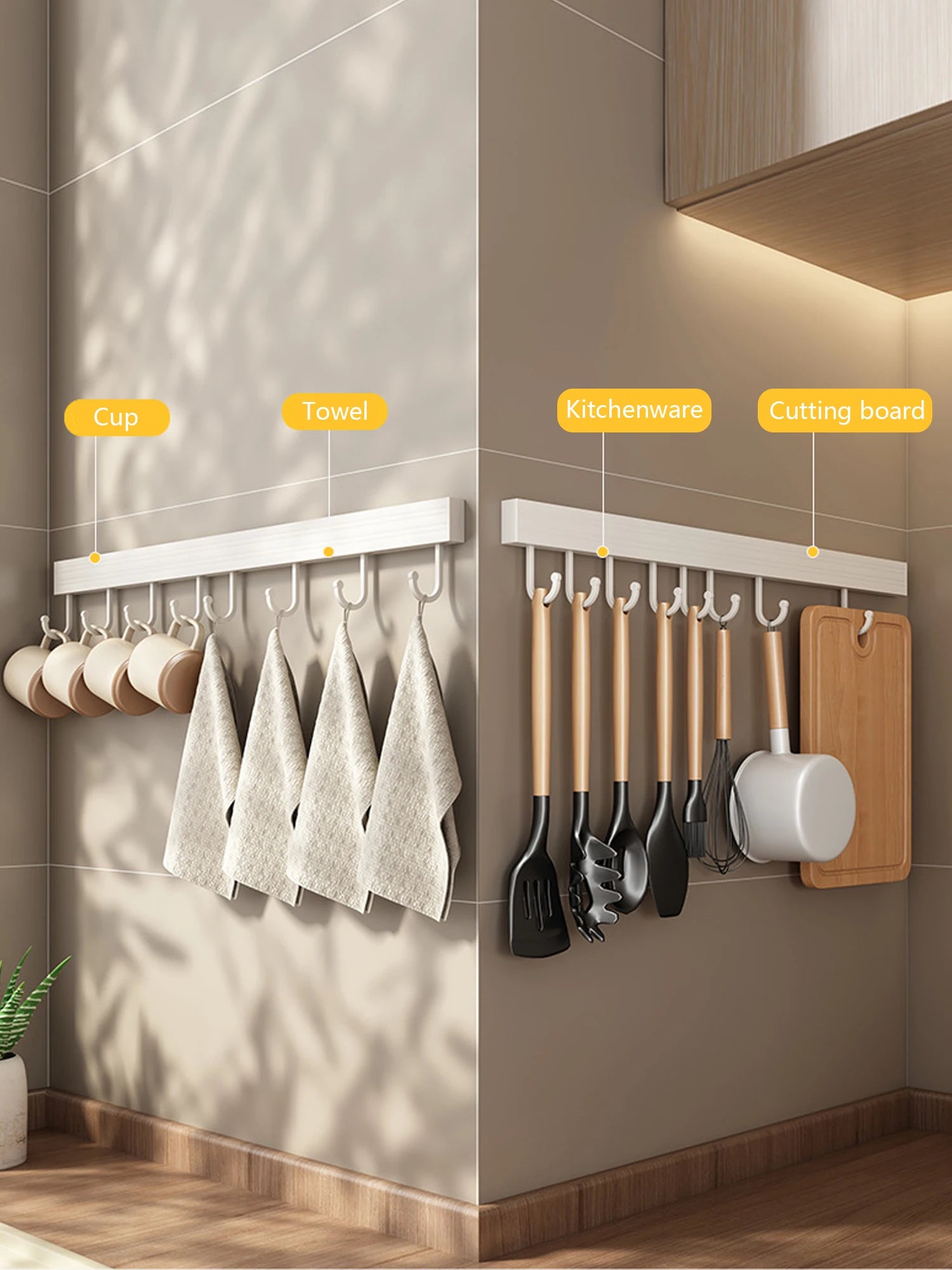 Wall-Mounted Hook Rack: no-drill, space-saving solution for hanging utensils. Keeps your kitchen organized and countertops clutter-free.